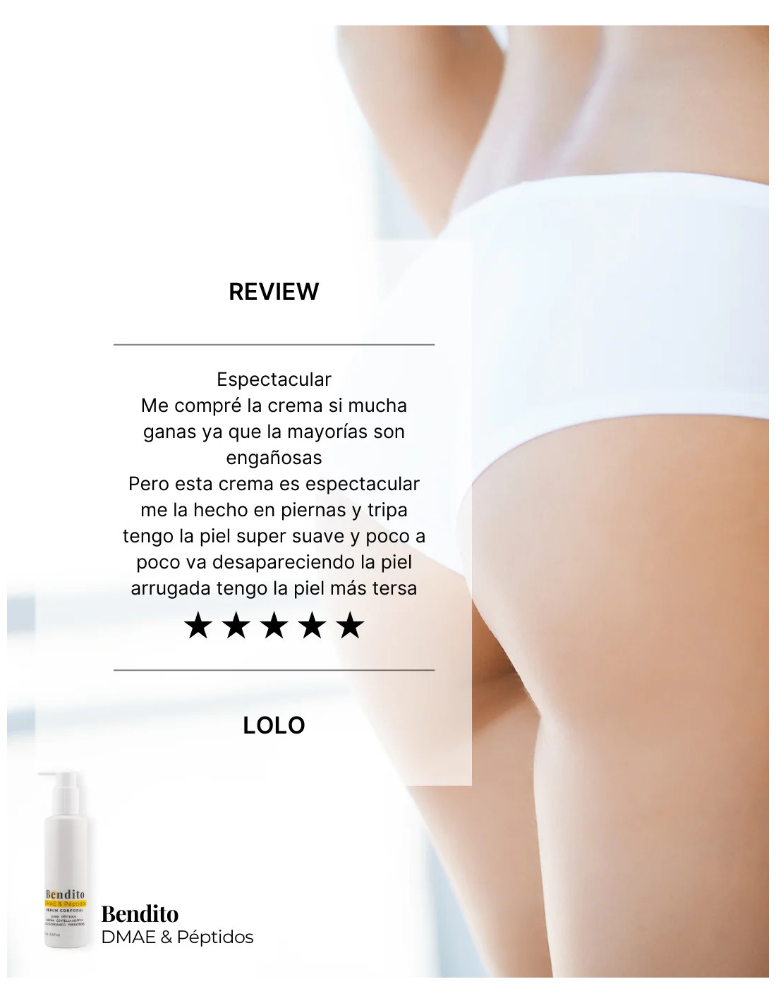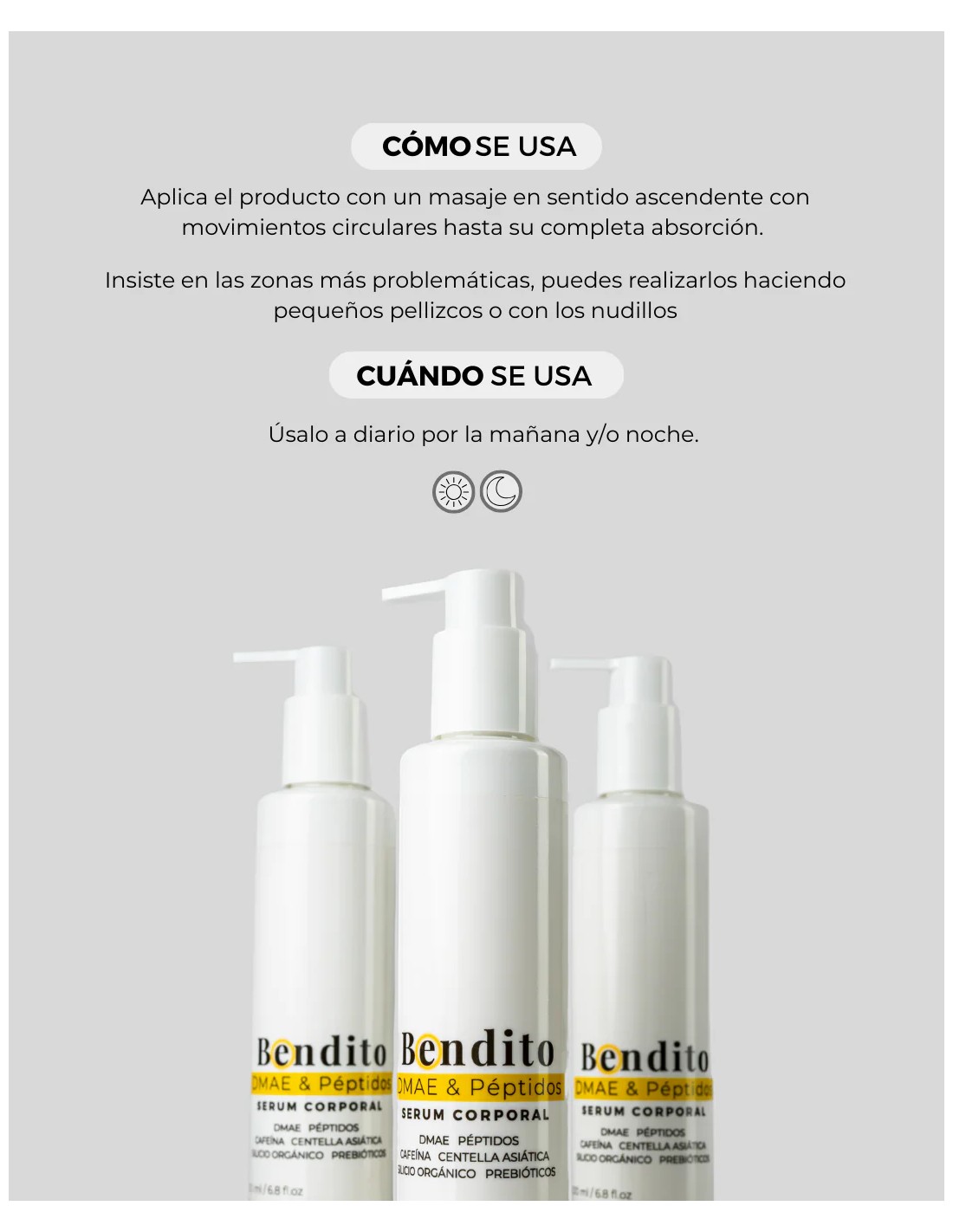 Bendito DMAE & Péptidos 200ML. Serum Corporal Reafirmante y Anticelulítico con DMAE, Péptidos y Cafeína