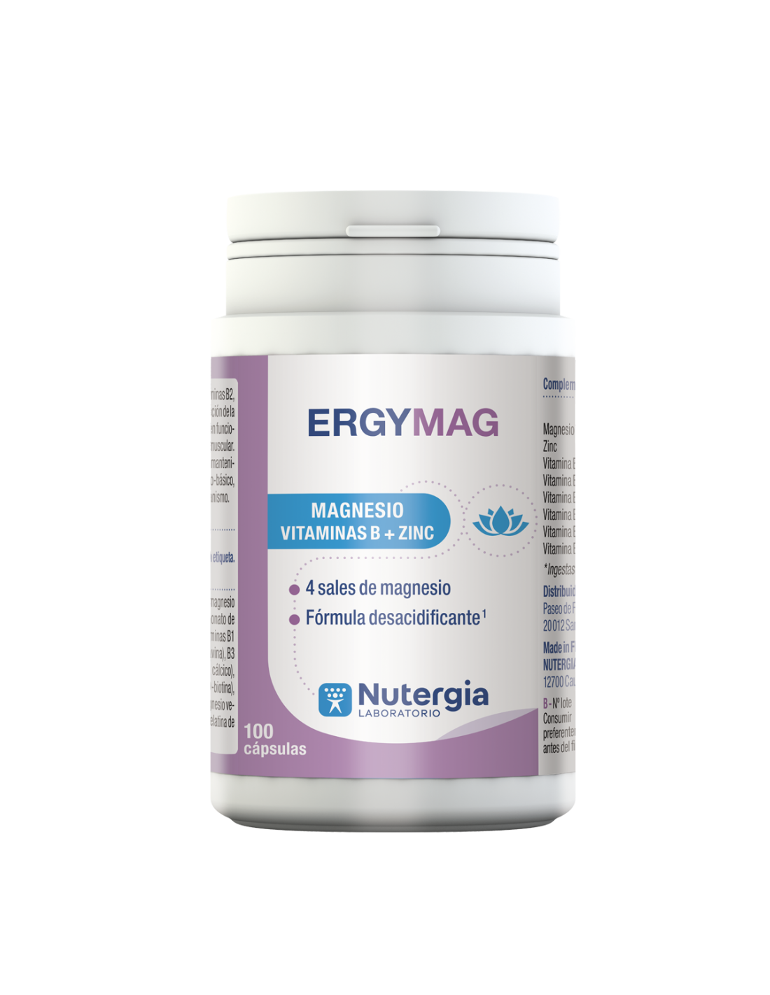 Composición Activos Composición por 3 cápsulas %IR* Magnesio 300 mg 80 Zinc 4,5 mg 45 Vitamina B1 1,1 mg 100 Vitamina B2 1,4 mg 100 VitaminaB3 16 mg 100 Vitamina B5 6 mg 100 Vitamina B6 1,4 mg 100 Vitamina B8 50 μg 100 *Ingestas de Referencia Ingredientes Citrato y bisciglinato de magnesio, magnesio marino (óxido de magnesio), carbonato de magnesio, gluconato de zinc, vitaminas B1, B2, B3, B5, B6 y B8, antiaglomerante: estearato de magnesio vegetal y fosfato de calcio. Cápsula: gelatina de pescado. Alérgenos: Pescado.