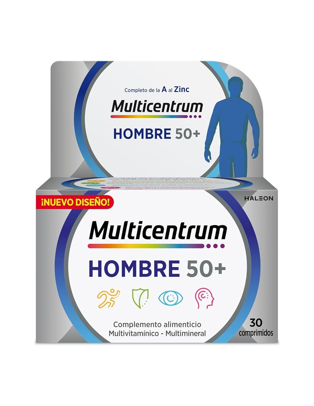 Multicentrum Hombre 50 es un complejo vitamínico especialmente formulado para cubrir las necesidades nutricionales de los hombres mayores de 50 años. Contiene una combinación de vitaminas y minerales que contribuyen al funcionamiento normal del sistema inmunitario, la salud de los huesos y la protección celular frente al daño oxidativo.